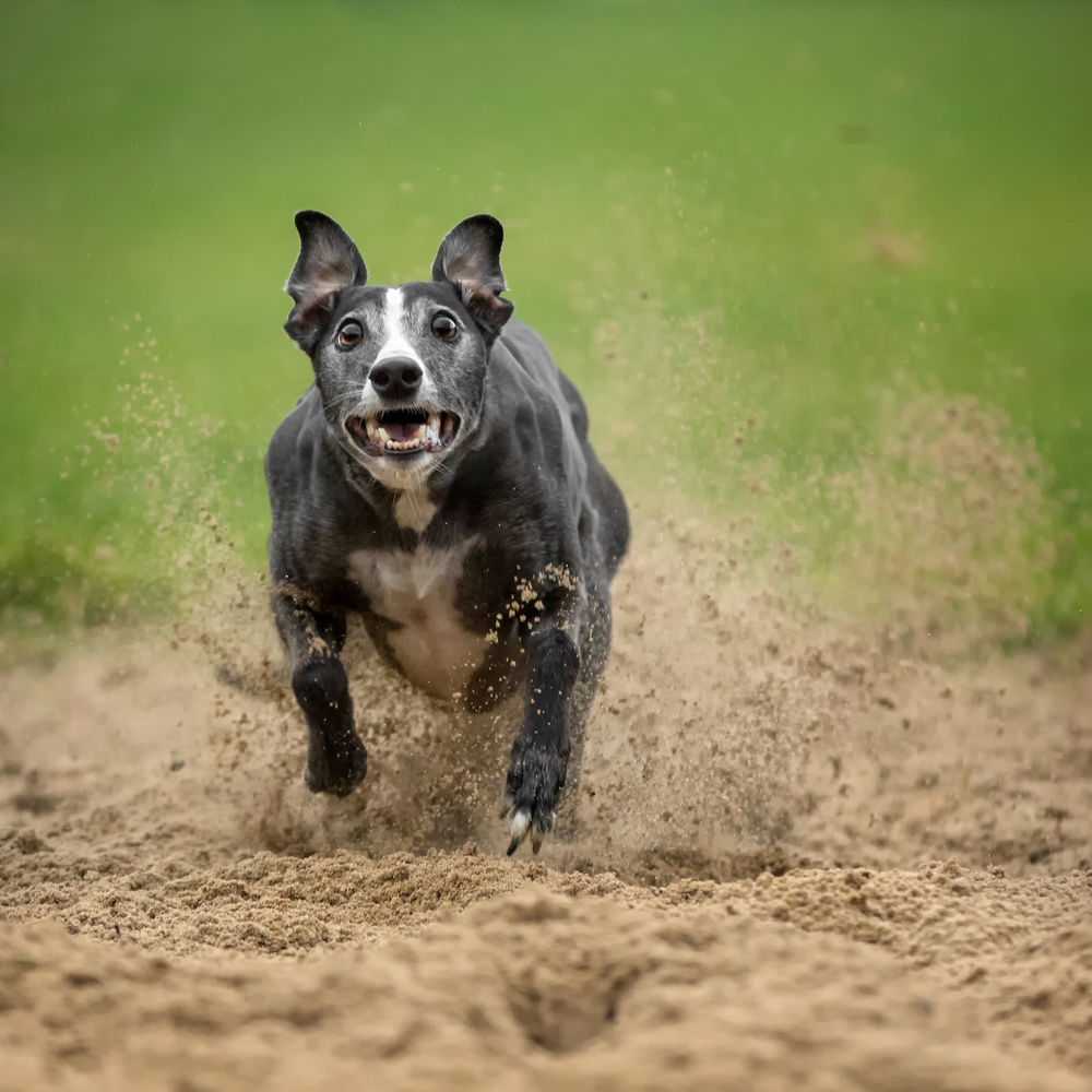 All photos I took of her running that day were out of focus or I only managed to get a shot of just the tip of her tail. I could not stand this and bought myself a DSLR camera the next day to get better photos. There and then my passion for dog photography started. Of course the fast dogs on the track were way too difficult to start with but for me this was a motivation to start learning.