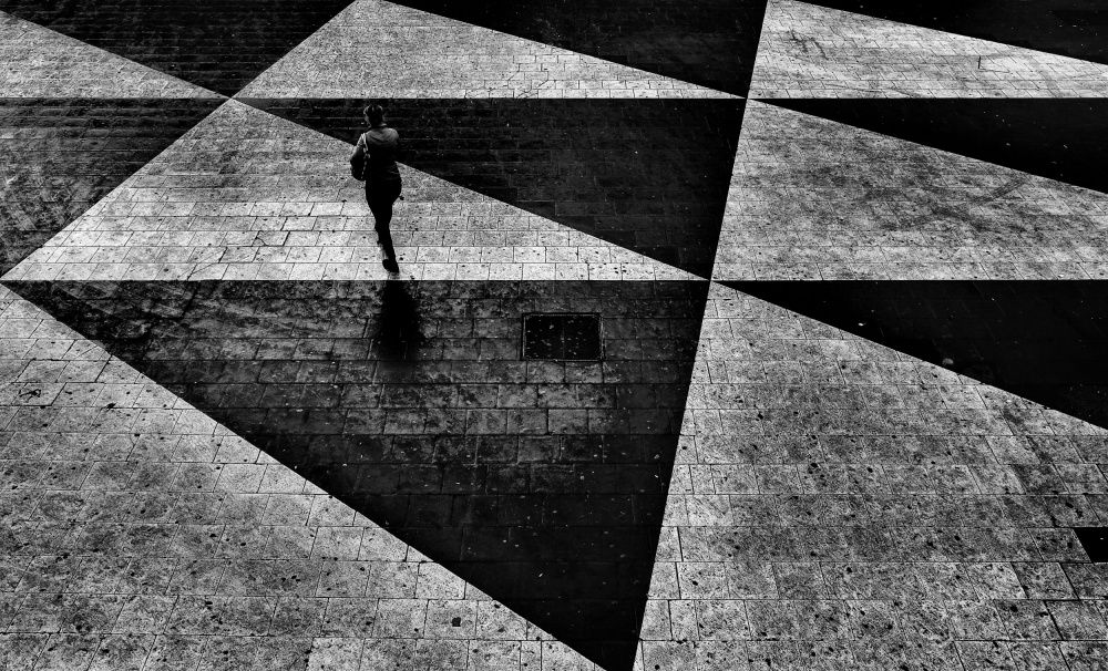 However, just under our feet there are amazing photographic subjects to discover. Perhaps a puddle reflection of the real world on a rainy day, a shadow flow, a pattern in the sidewalk or the opportunity of great geometric compositions from road intersections.