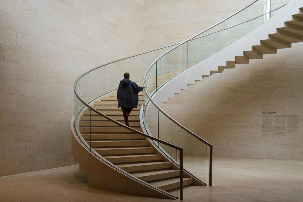 The free standing staircase from the basement to the ground floor struck me by the elegance of the curve and the top workmanship of the concrete.