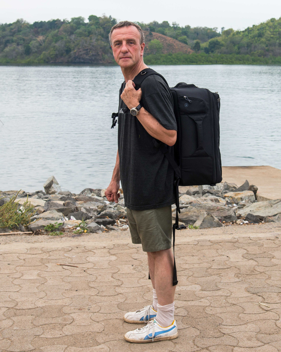 With a fully-loaded bag you are probably carrying some $20k worth of photographic equipment on your back. Specialist photographic insurance will cover that amount of equipment and is essential if the shoot is in any way connected with a business, even if the business is simply to sell the pictures later on a stock site. Some household insurance will cover it too but not many will cover a single item of the value of a 600mm prime. But in addition to the insurance, it’s a risk assessment too and if you are trekking through jungle or rainforest or using small boats to get around there is a limit to the number of precautions that you can take. The picture shows my fully loaded bag in the bow of a man-powered leaky canoe which was the only mode of transport to the Lokobe National Park in Nosy Be, Madagascar.