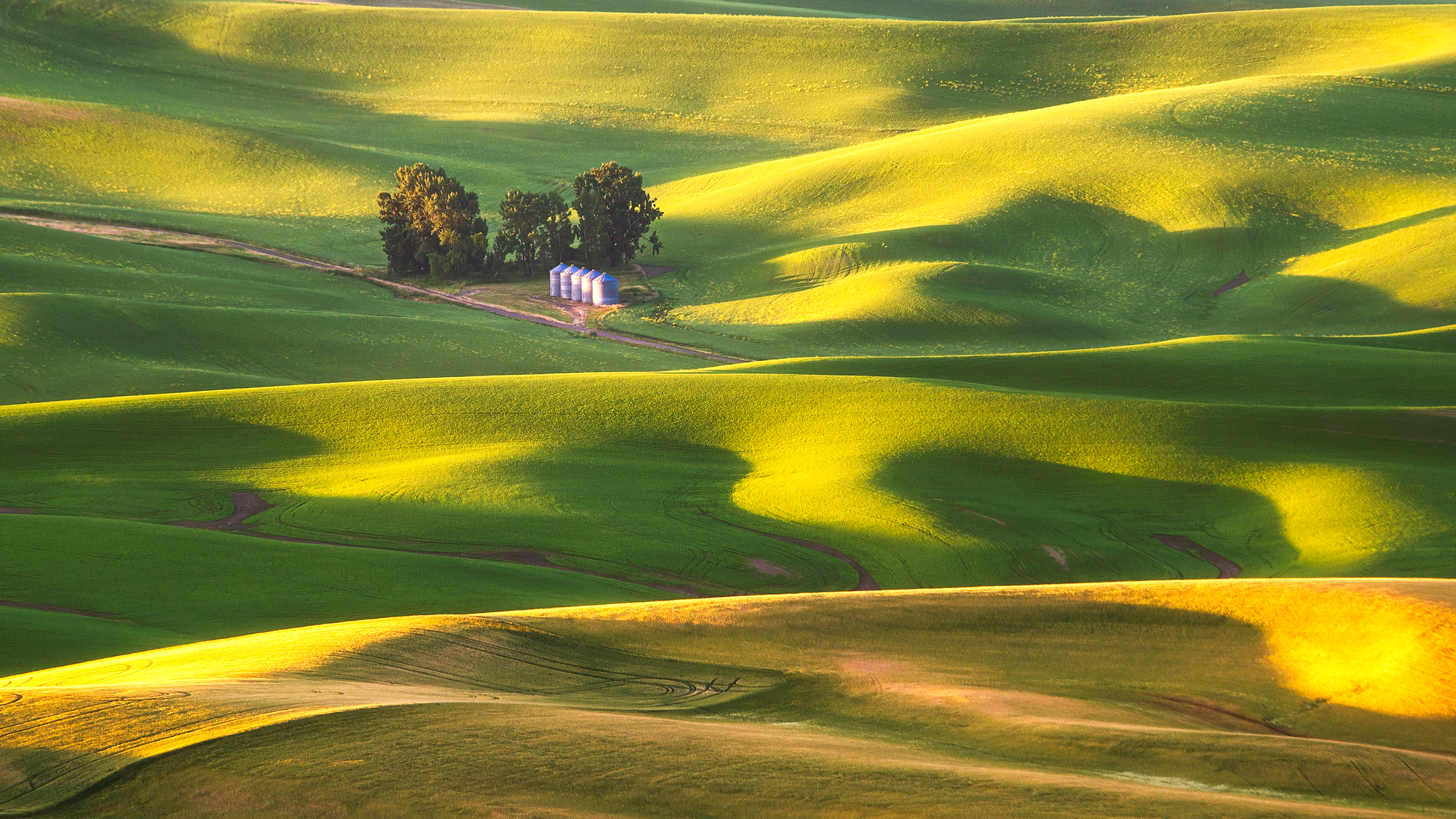 The crops grown in the region are primarily cereal grains; wheat and barley along with peas, lentils, garbanzos, bluegrass and oil seed crops like mustard and canola. The Palouse is the largest lentil growing region in the U.S., but it is the colours that these crops paint on the landscape, the rolling hills, and the special light of the Palouse that make it so photogenic and a special place for photography.