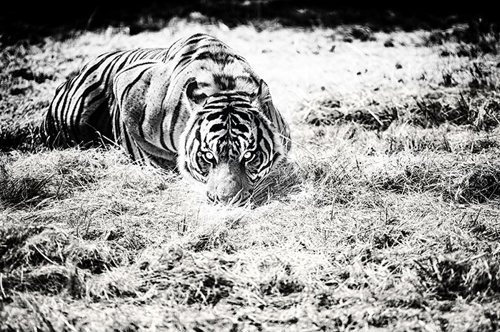 This one is beautiful. He is far, very far from me, I had a 300 mm f4 at that time, in the feline park, but I was able to capture his look. I see a wild look in this tiger. With his mouth open, it's as if he's expressing the wild side of who he is. A wild animal capable of eating me. I don't feel it like Kruger's. Where Kruger seems to be a friend, I see here a stranger whose eyes I meet.