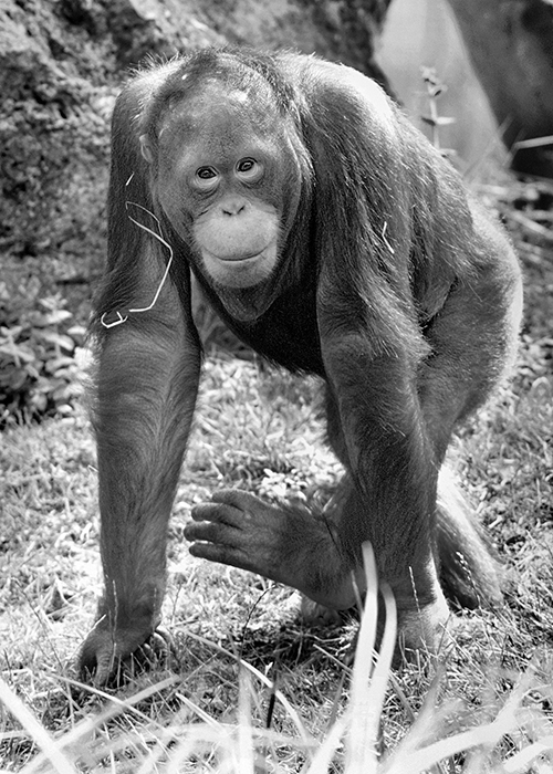 What is great with digital, is that you can get beautiful images, even if you missed the photo. I take for example, this orang outang, which after post processing, gives a surprising result in black and white.