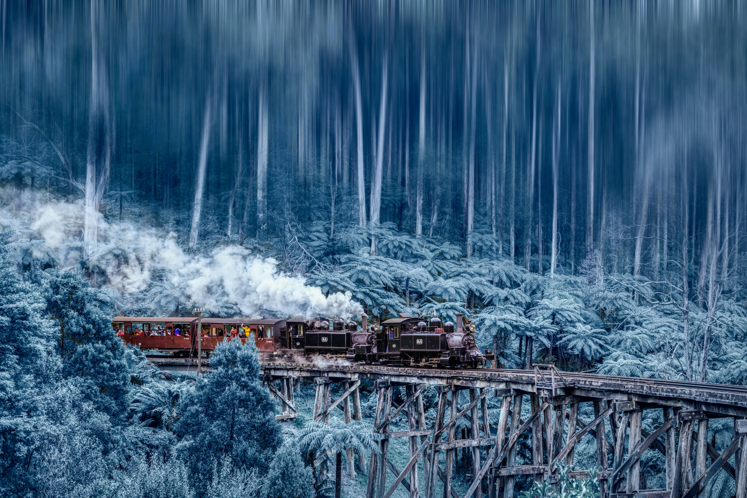 The Puffing Billy Railway is a 762 mm narrow gauge heritage railroad located in the Dandenong Ranges outside Melbourne; it was opened in 1900. The line was originally one of four experimental narrow-gauge railroads operated by Victorian Railways in the early 20th century. It runs through the southern foothills of the Dandenong Ranges from Belgrave to Gembrook. Today it is one of the most famous steam railroad museum trails in the world, attracting tourists from all over Australia and overseas.