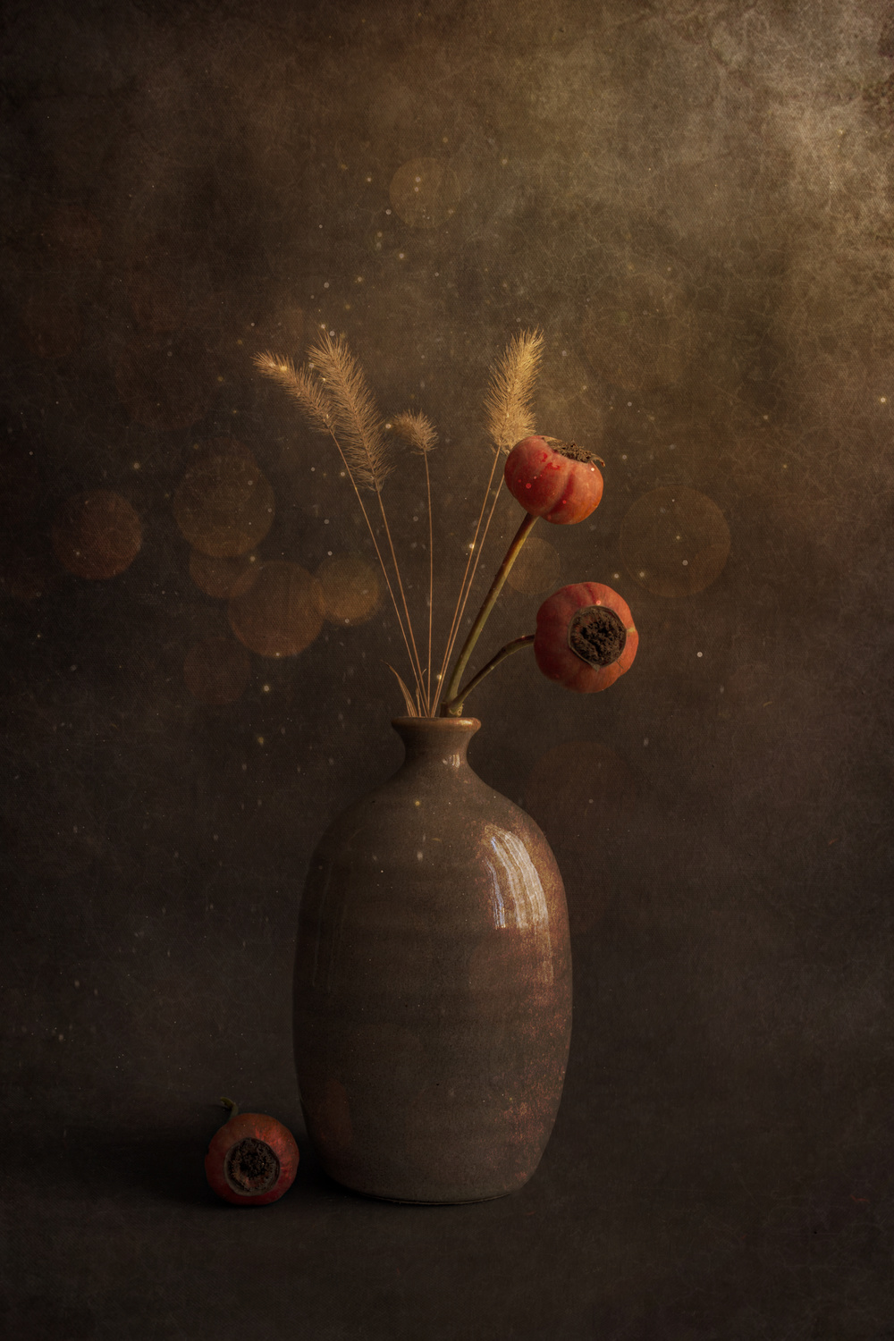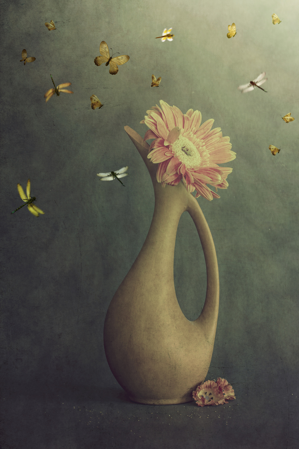 When I take still life images, I prepare my background first. Then I choose the vase and the flowers or other props. The next step is to set up the composition. When all this is set, I start shooting in manual mode. I prefer to use natural light, so most of my images are long exposures. I usually take multiple images. The final step is putting these images on my computer and choose the one or more that I want to edit. While I am adjusting the main aspects like contrast and light I decide on the mood of the image. Then the creative part starts. I use Photoshop and my plug-ins to shape the image as I wish.