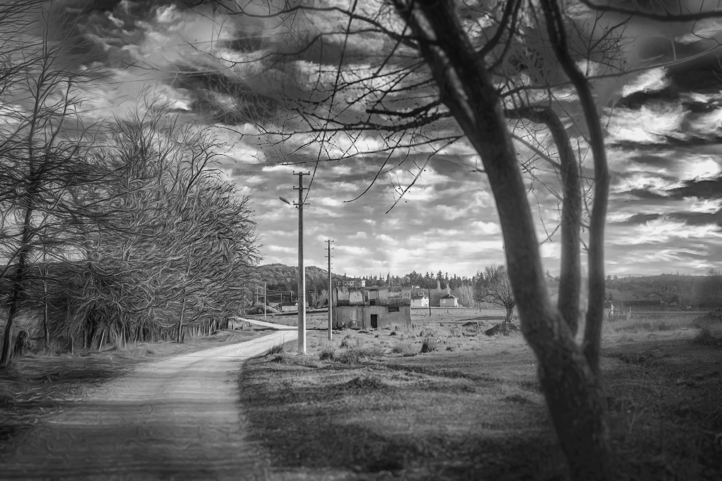 My landscape shots also are places that I'm used to visit. There are certain events connected to those places. This helps me to set the feeling of image. I took the image below during a hike late autumn of this year. Leaves were fallen out of the trees.  The bare branches were reaching out to me while I was passing the trees. I wanted to implement this into the image. So, during editing I touched the branches in a different way as you can see.