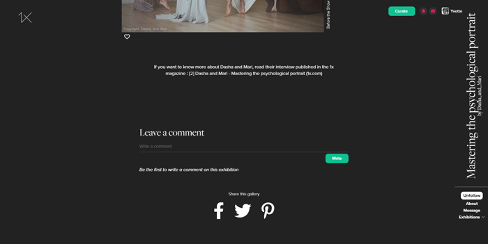 There you will see the frame where you can write your comment and the possibility to share the exhibition on Facebook, Instagram and Pinterest.