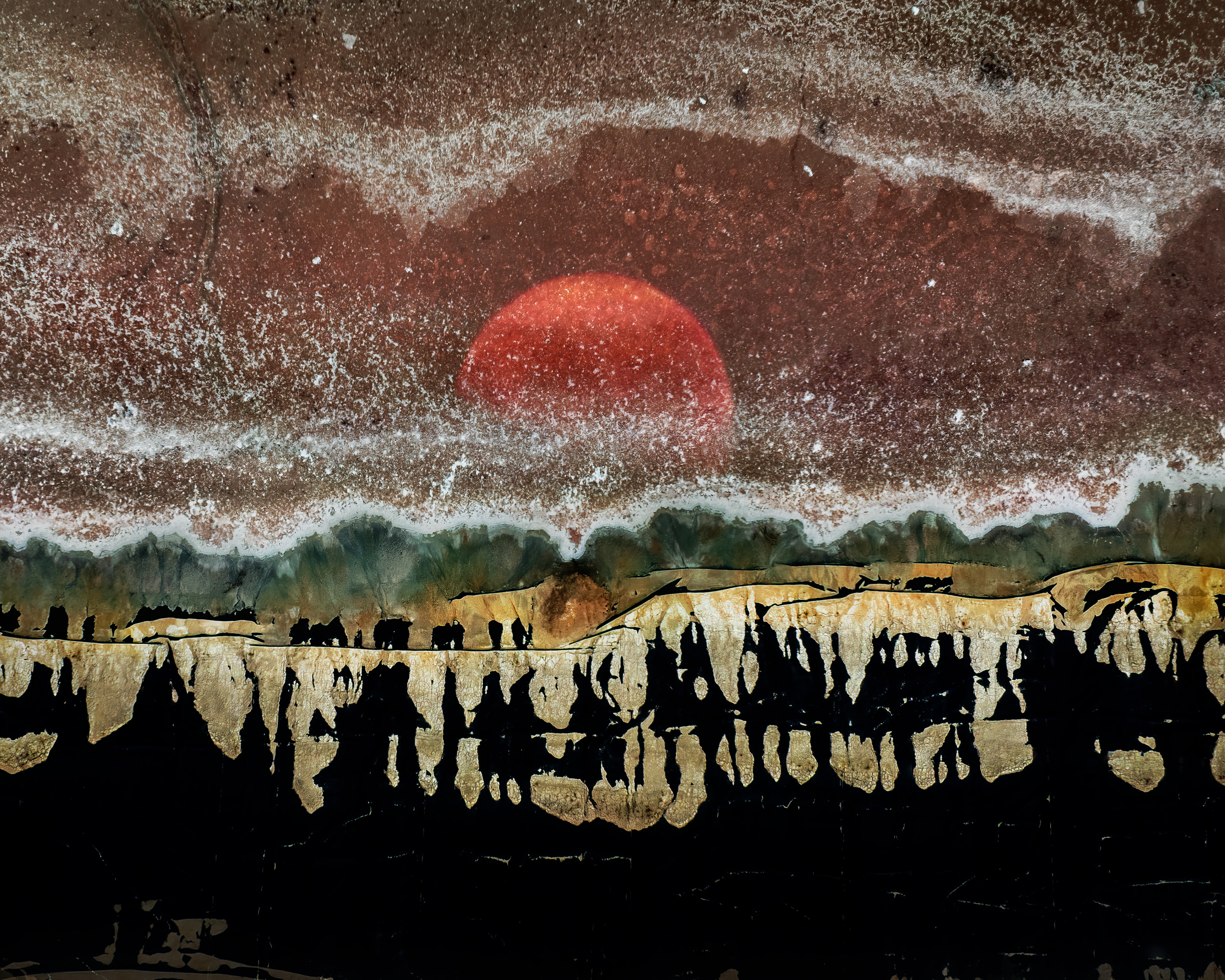 From "the traces", "boat ramp" or "sleeping beauties" to "dry river scape" or "ancient battle field" there is a very important creative gap in your work. Why and how did your photographs evolve from the figurative landscapes of your early days (often aerial) to these beautiful, more abstract paintings?