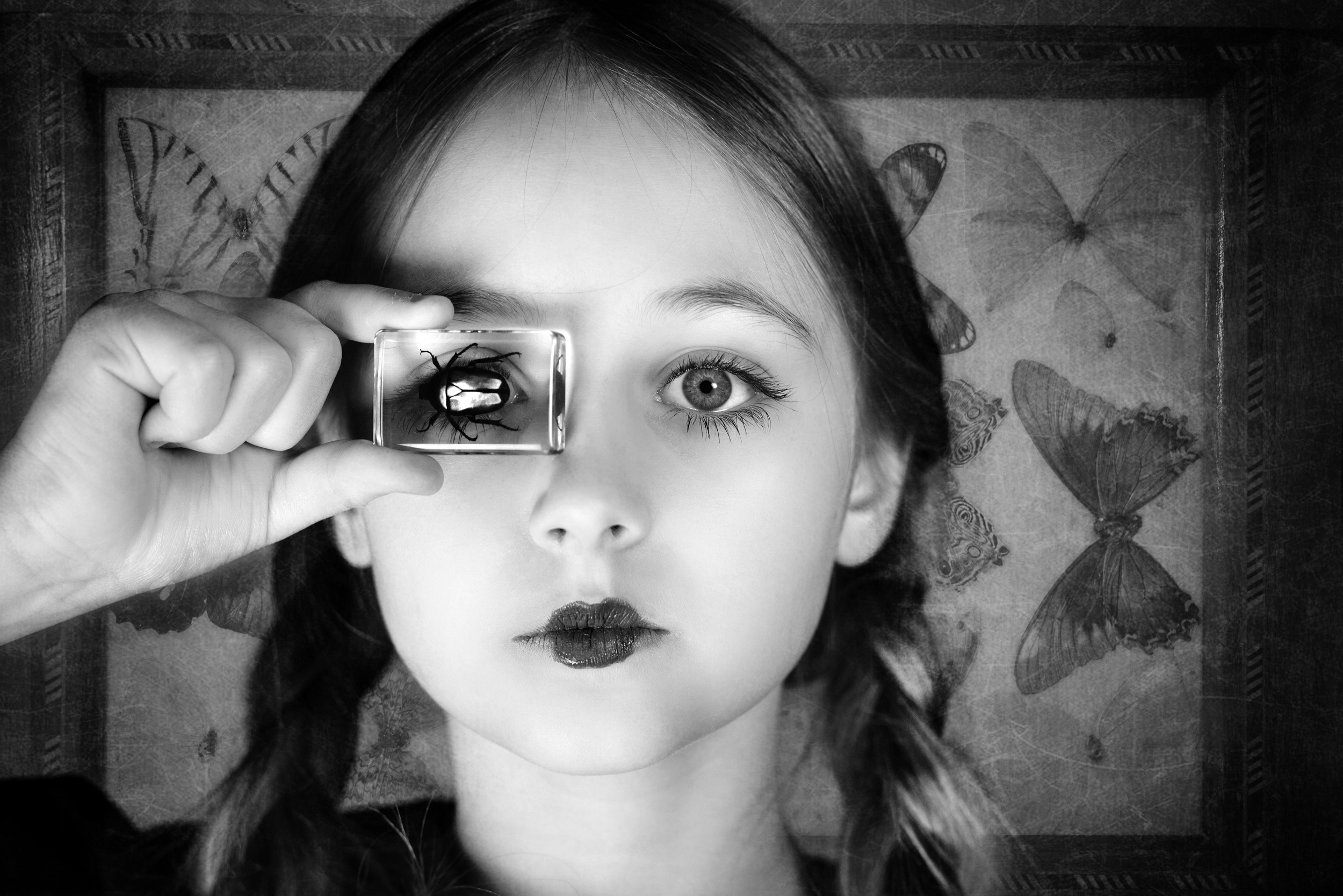 Eccentricity is created both in the camera and in post processing. A classic portrait with an artful close up or angle, crop or frame can become eccentric as can an ordinary subject reflected in water, or filtered and edited in Photoshop. Most subjects shot in juxtaposition with artistic sensitivity and humor can become a masterpiece.